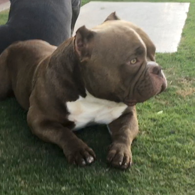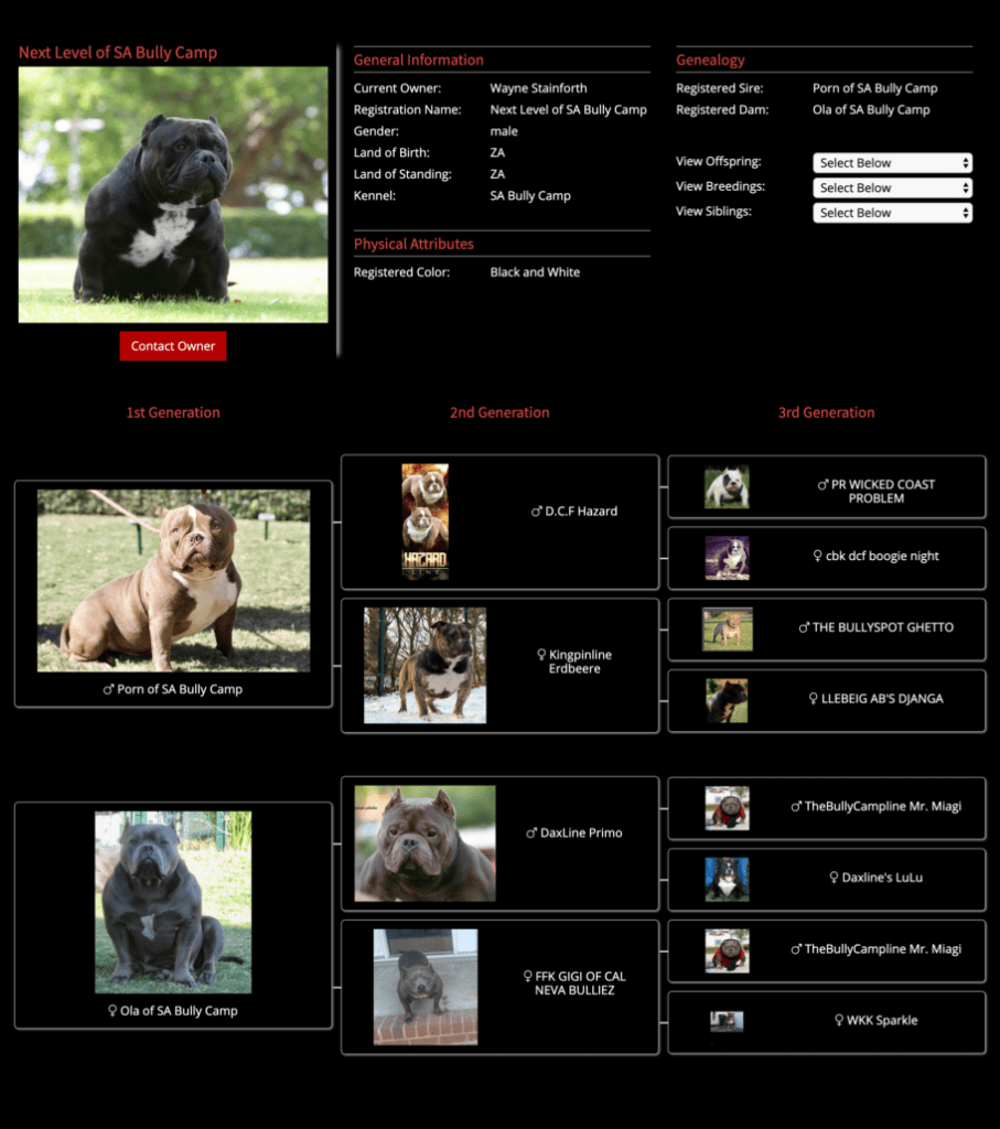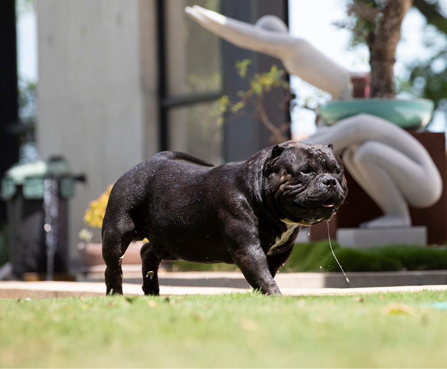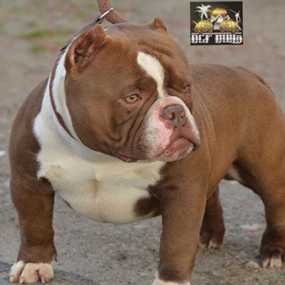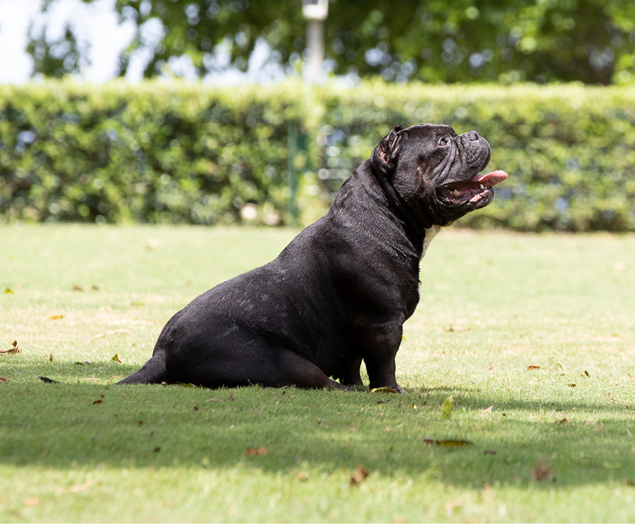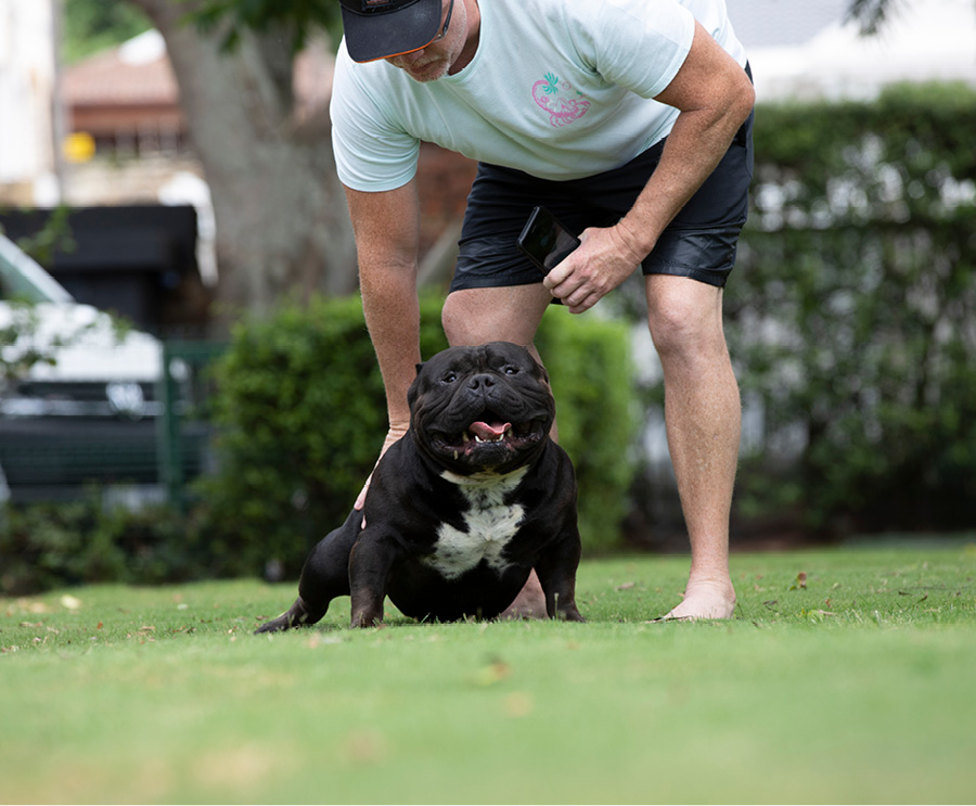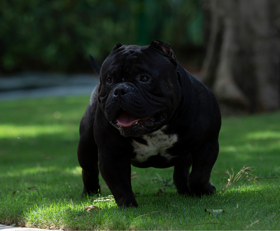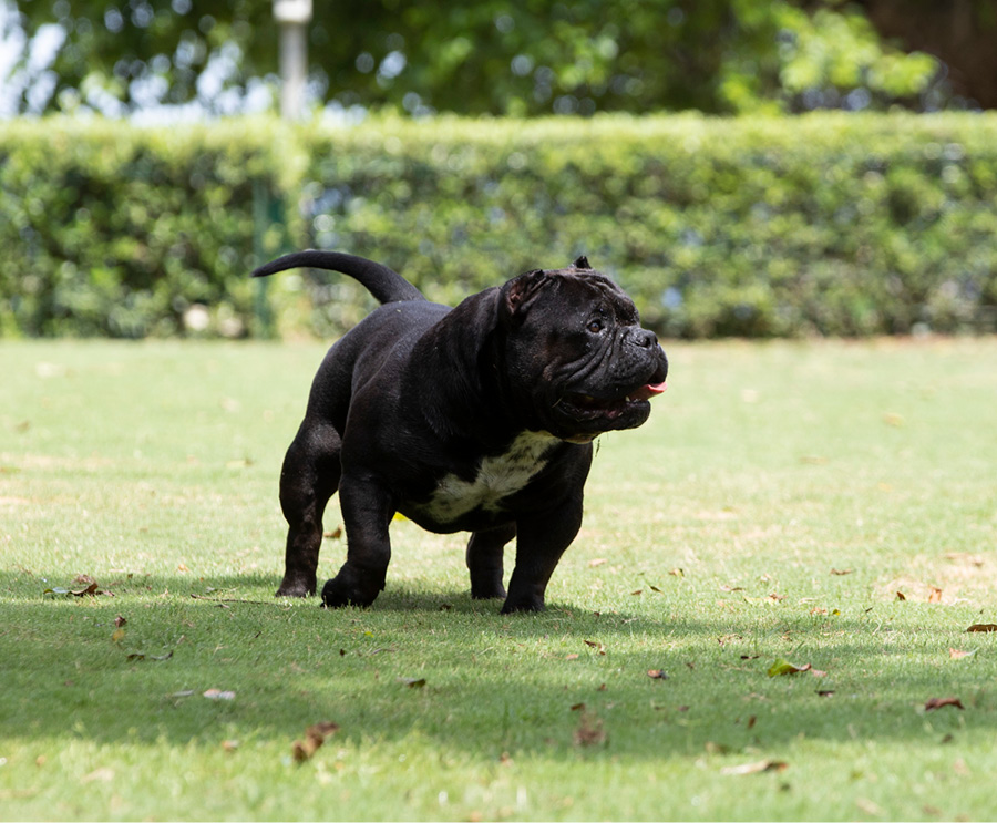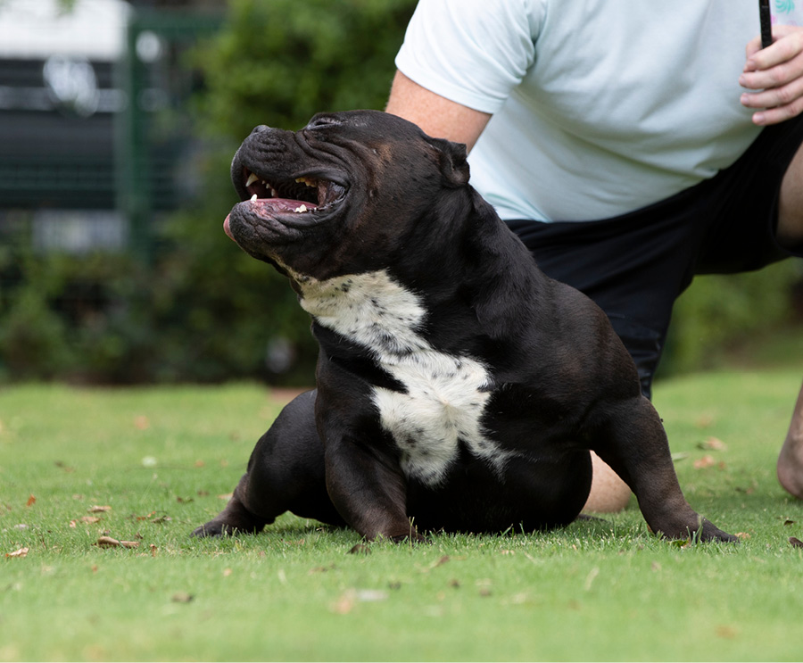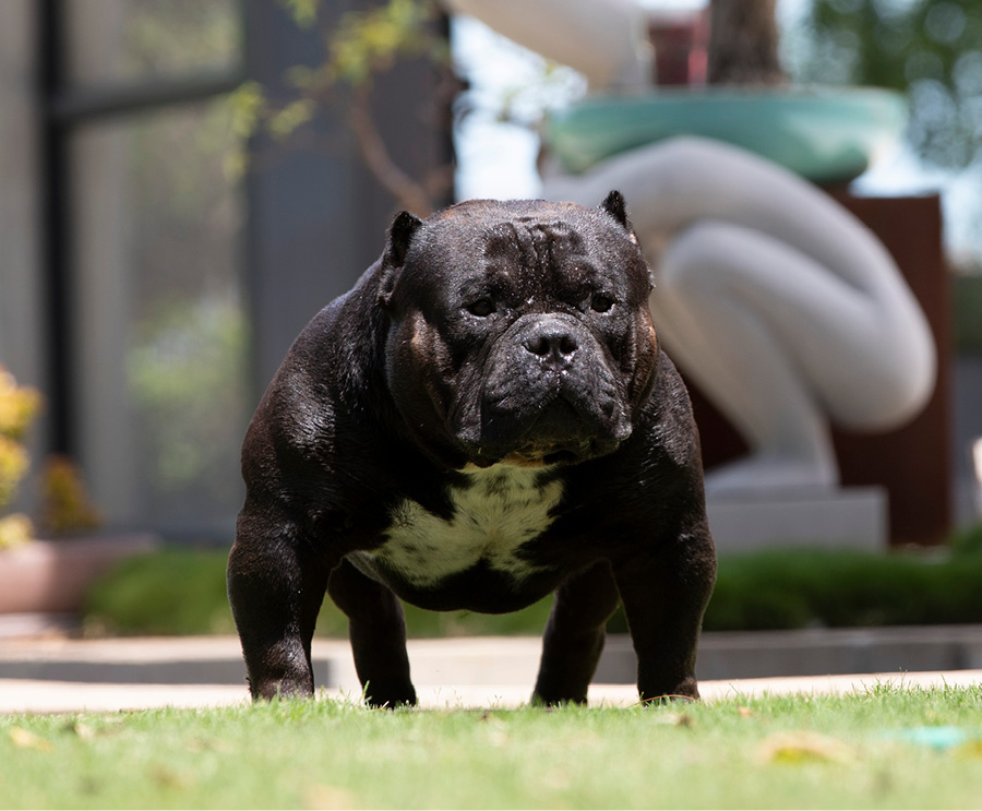 Next Level is our famous extreme Pocket bully, black in colour and super low with a massive chest. We consider him to be the best Pocket American Bully in Africa and one of the finest examples of the breed in the world. Well established & knowledgable dog-men from around the globe have expressed their admiration for Next Level. His extreme build and near perfect dimensions mean his semen is extremely sought after internationally, however he is closed to the South African public to ensure the exclusivity of his bloodlines within our camp.